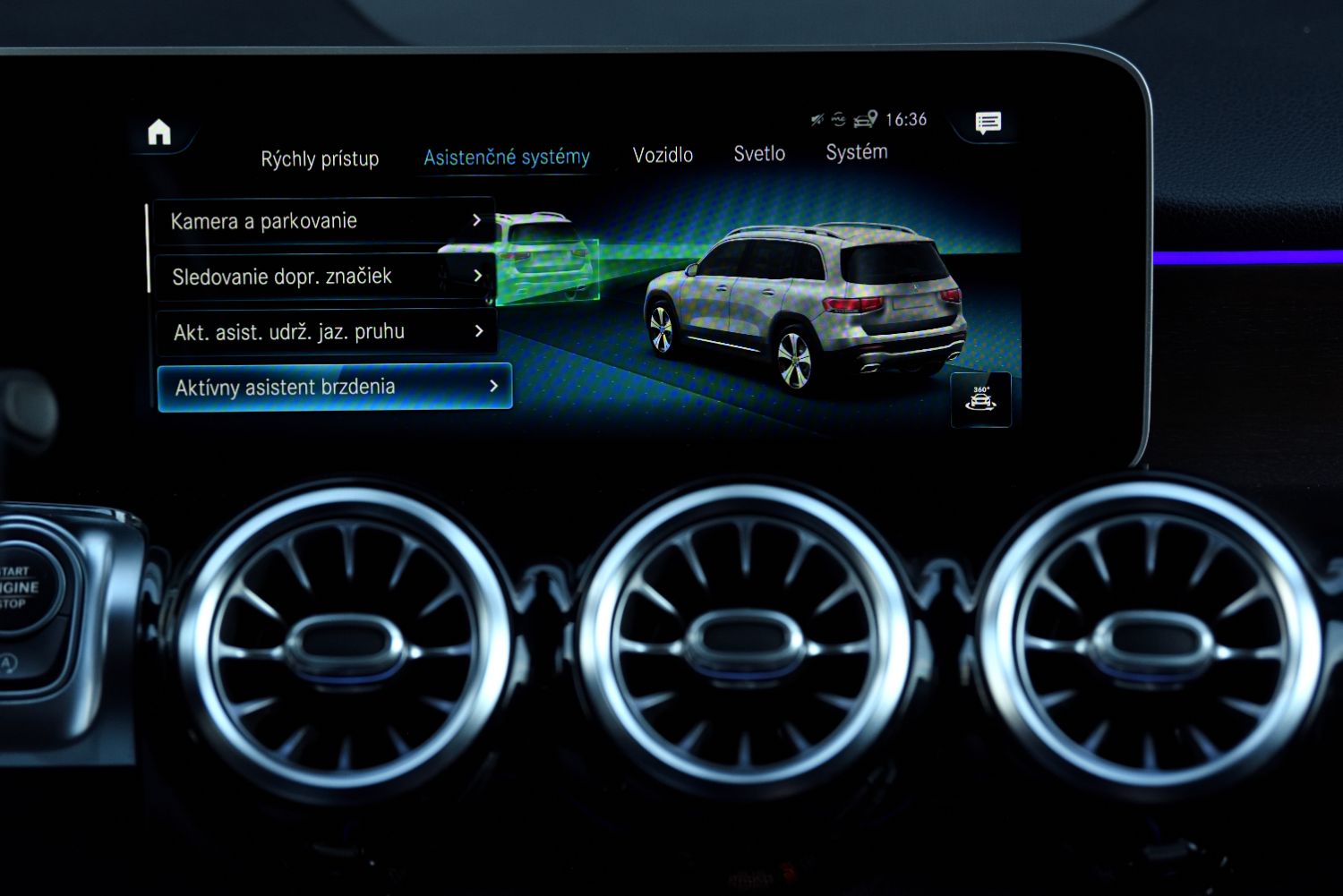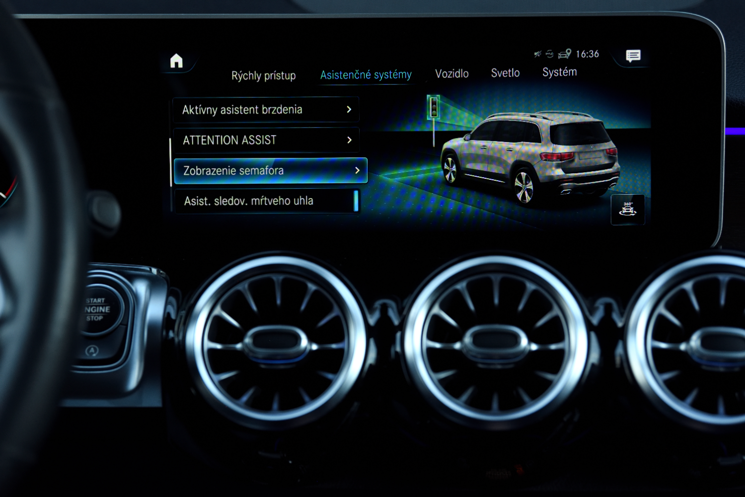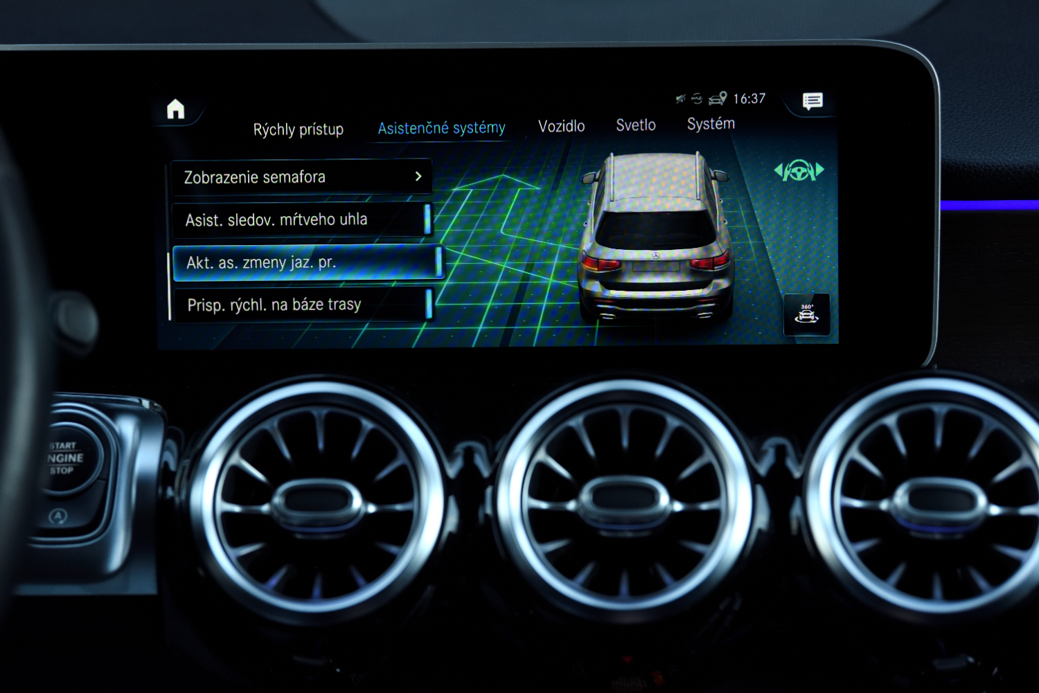 Sledovanie dopravných značiek, Aktívny asistent brzdenia, Asistent únavy vodiča, Zobrazenie semafóra,