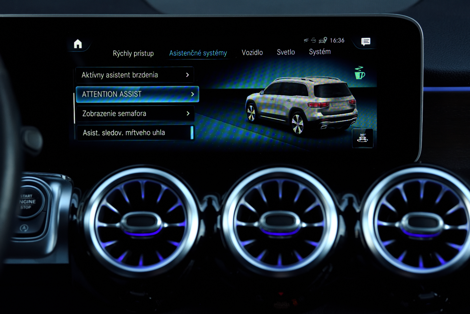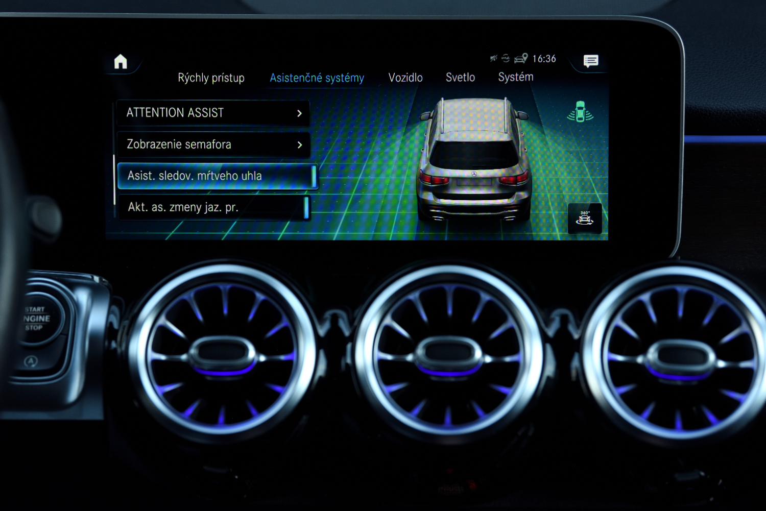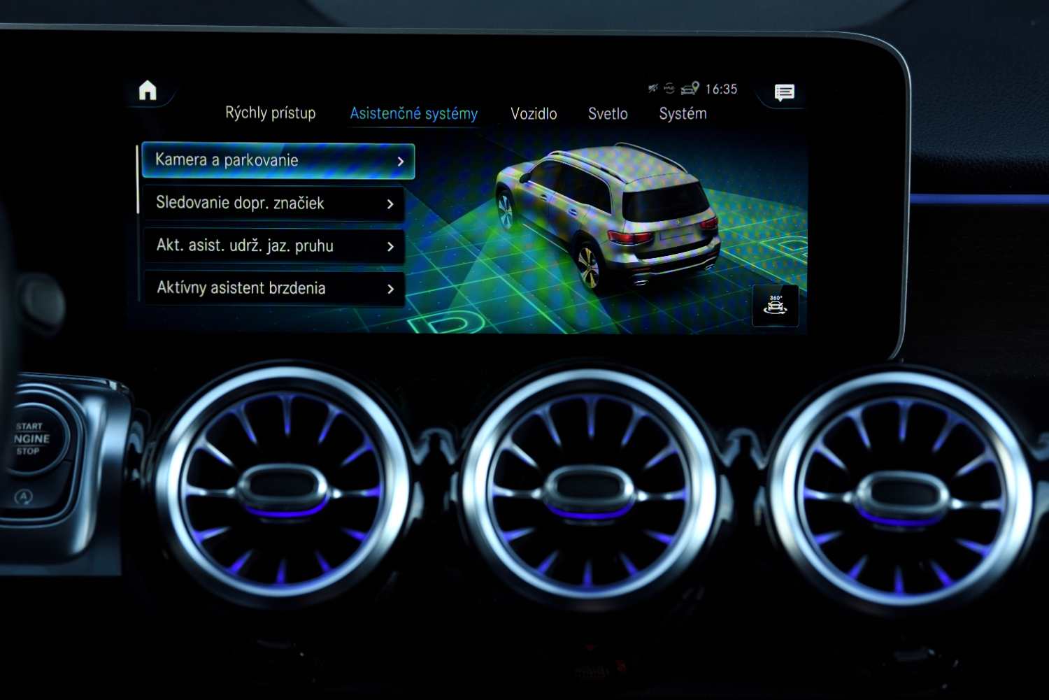 Sledovanie dopravných značiek, Aktívny asistent brzdenia, Asistent únavy vodiča, Zobrazenie semafóra,